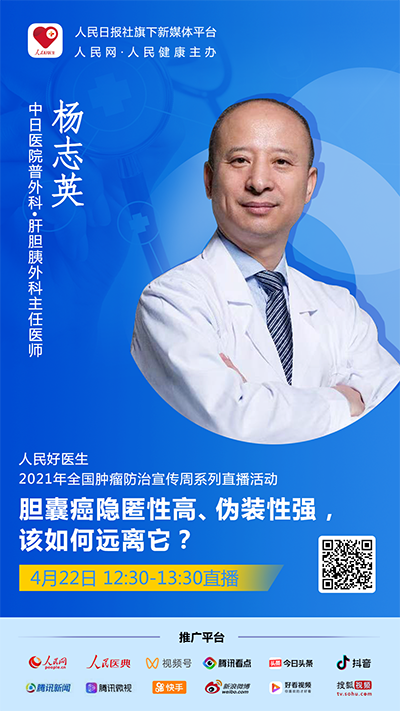 膽囊癌“隱匿性”那么高,“偽裝技術(shù)”那么強,我們應(yīng)該如何預(yù)防它?2021年4月22日(周四)12:30-13:30,中日醫(yī)院肝膽外科主任醫(yī)師楊志英將做客人民日報社旗下新媒體“人民好醫(yī)生”客戶端,就膽囊癌的預(yù)防問題為大眾答疑解惑。