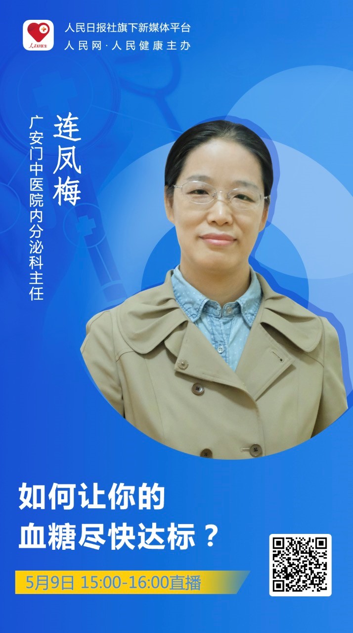 2021年5月9日(周日)15:00-16:00,廣安門中醫(yī)院內(nèi)分泌科主任連鳳梅將做客人民日?qǐng)?bào)社旗下新媒體“人民好醫(yī)生”客戶端,就 “如何讓你的血糖盡快達(dá)標(biāo)?”的話題與您進(jìn)行分享。