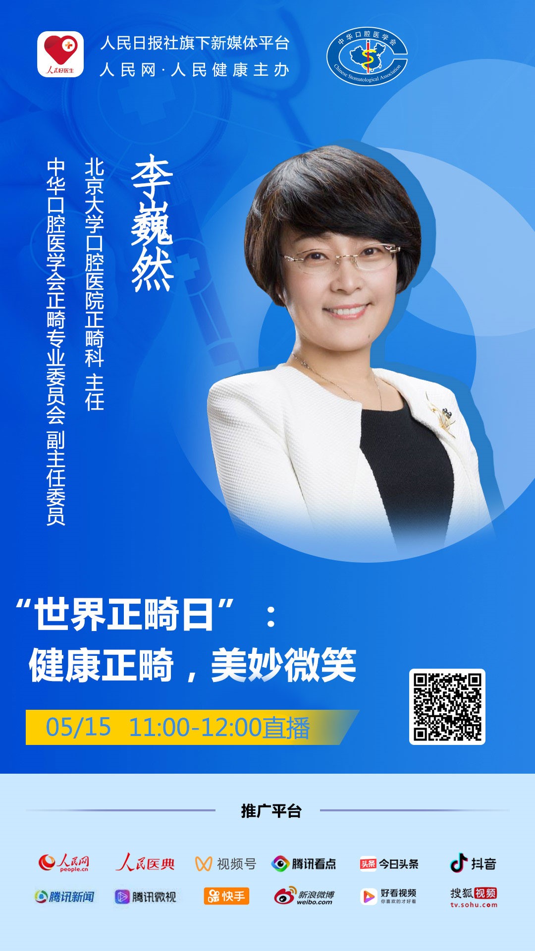 今年5月15日是第五個“世界正畸日”(World OrthodonticHealth Day)。世界正畸日的設(shè)立,旨在喚起廣大民眾對正畸的認(rèn)識,促進(jìn)廣大正畸醫(yī)師為廣大民眾提供健康的正畸治療。牙齒不完美,想做正畸,但是做正畸會有這種那種顧慮,關(guān)于各種傳言,可信不可信呢?5月15日11:00至12:00我們邀請到北京大學(xué)口腔醫(yī)院正畸科主任李巍然做客人民好醫(yī)生名醫(yī)直播欄目。給公眾科普口腔正畸的相關(guān)知識。
