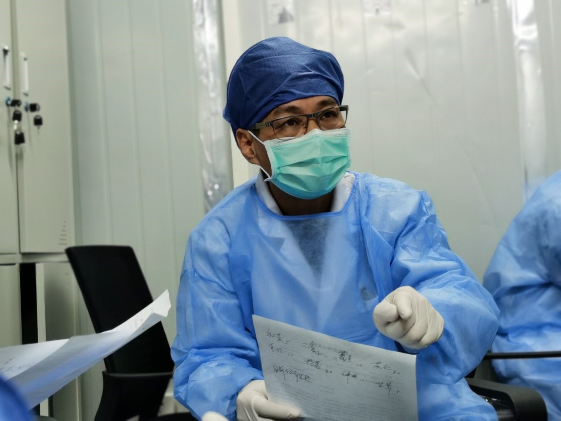 正在為新冠肺炎患者診斷的張忠德(左)。受訪者供圖