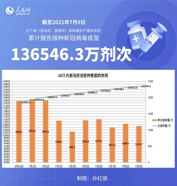 國家衛(wèi)健委:截至7月9日全國累計接種新冠病毒疫苗136546.3萬劑次