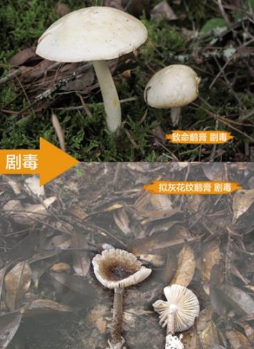 含劇毒的致命鵝膏和擬灰花紋鵝膏。圖片來源:中國疾病預(yù)防控制中心