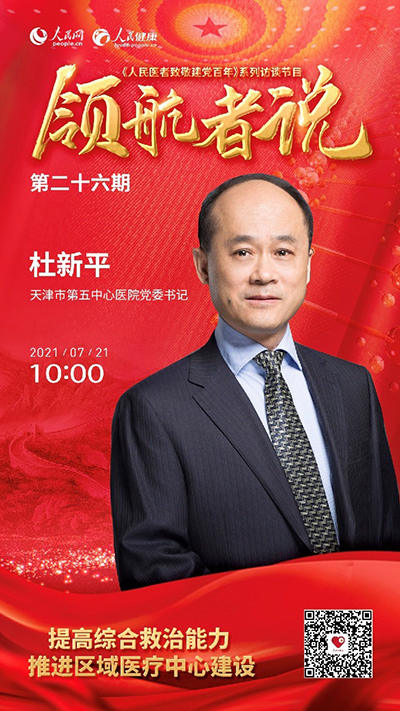 2021年7月21日 10:00,天津市第五中心醫(yī)院黨委書(shū)記杜新平做客演播室,以“提高綜合救治能力 推進(jìn)區(qū)域醫(yī)療中心建設(shè)”為主題進(jìn)行訪談。