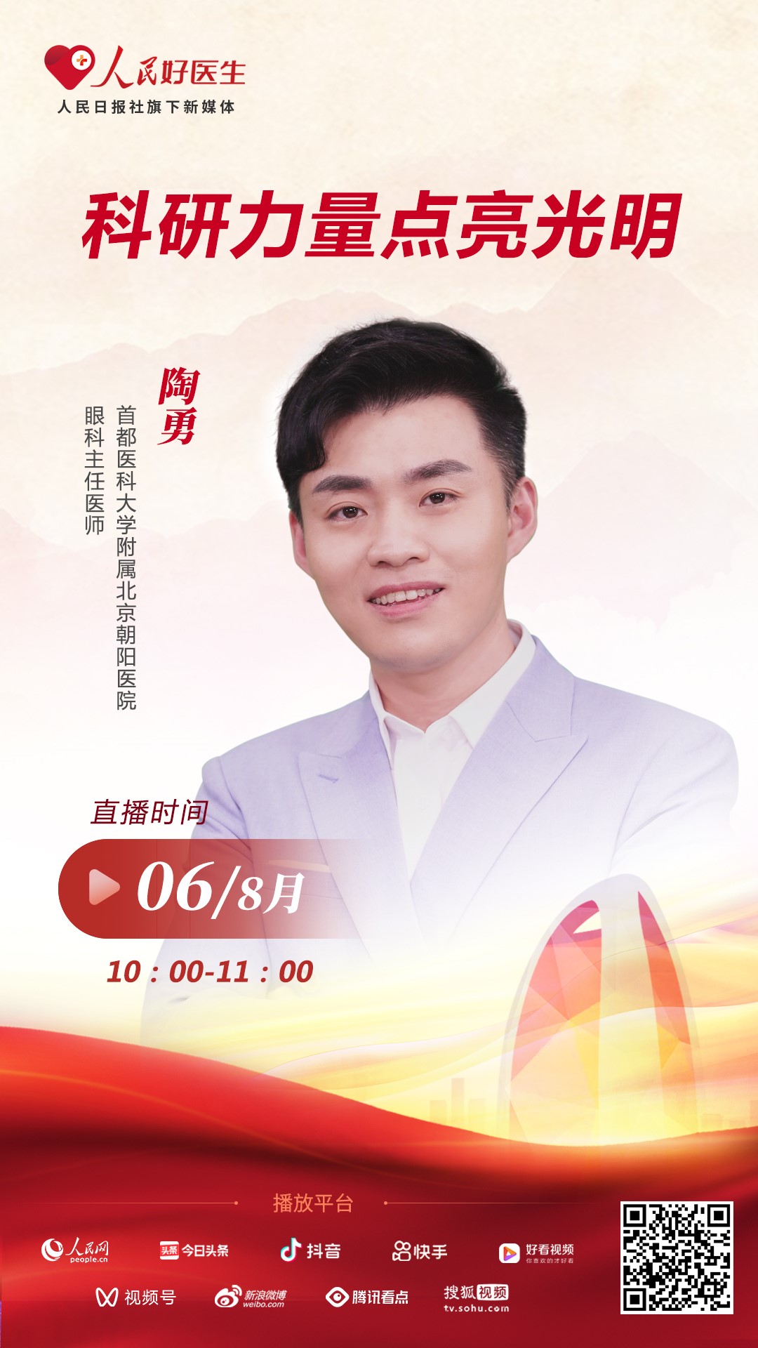 8月6日10:00-11:00,我們邀請到首都醫(yī)科大學附屬北京朝陽醫(yī)院眼科主任醫(yī)師陶勇做客“人民好醫(yī)生”客戶端,就眼底疾病創(chuàng)新治療方式、科研成果轉化相關話題進行深入分享和交流。