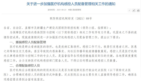 聯(lián)防聯(lián)控機制綜合組:不得以任何理由削減醫(yī)療機構(gòu)感控人員數(shù)量
