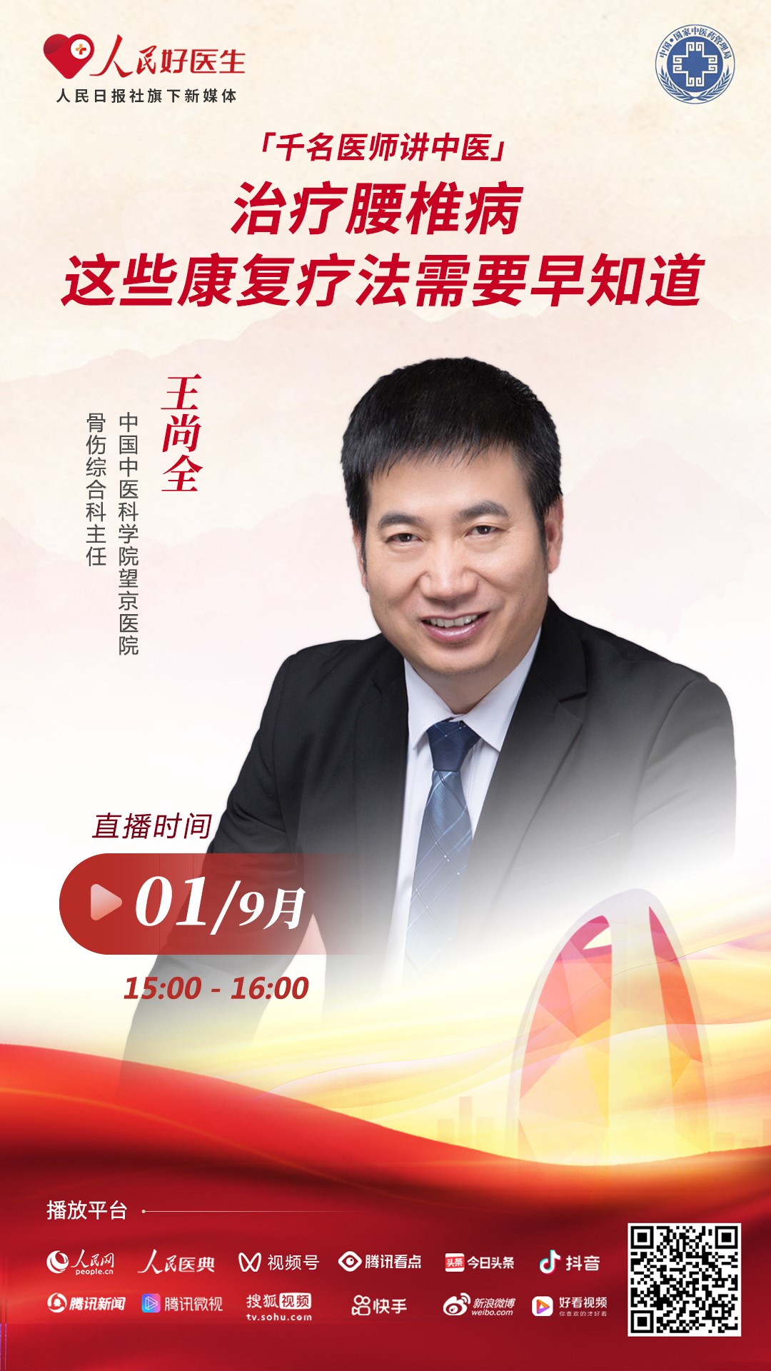 近年來,腰椎病在人群中的發(fā)病呈現(xiàn)出低齡化趨勢。學(xué)生、長期從事電腦工作者、中老年人都是腰椎病的多發(fā)人群。腰椎病都有哪些類型?如何預(yù)防?患病之后怎樣自我康復(fù)?9月1日15:00,人民日報(bào)社旗下新媒體平臺(tái)“人民好醫(yī)生”與國家中醫(yī)藥管理局辦公室聯(lián)合推出的“千名醫(yī)師講中醫(yī)”系列直播,本期將邀請中國中醫(yī)科學(xué)院望京醫(yī)院骨傷綜合科主任王尚全做客直播間,為大眾詳細(xì)科普腰椎病的中醫(yī)康復(fù)治療法。