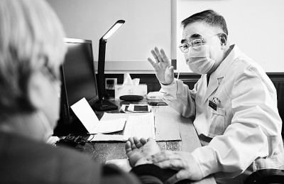 張伯禮(右)為患者把脈、問(wèn)診。 新華社發(fā)