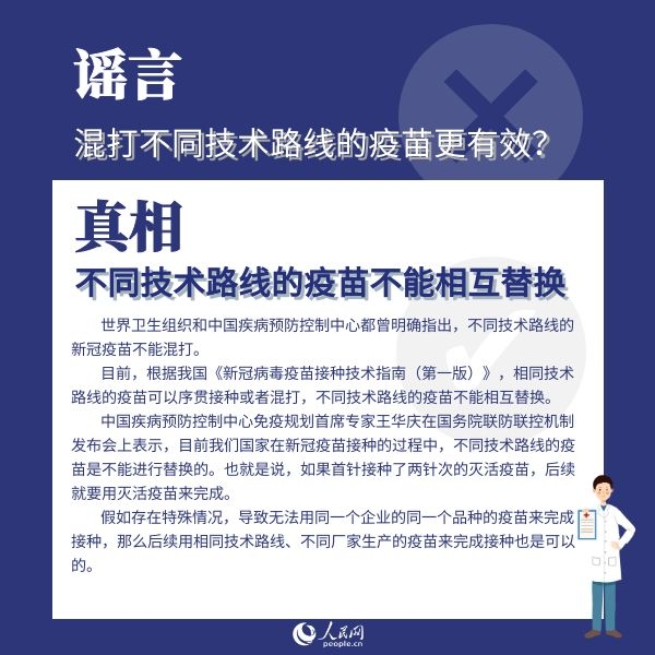 然而,近期不斷有破壞疫苗接種的謠言出現(xiàn),其中既有“混打不同技術(shù)路線的疫苗更有效”這種“技術(shù)流”傳聞,也有“注射新冠疫苗致癌”“拉姆達(dá)晉升‘新毒王’,疫苗沒用了”這種危言聳聽的傳聞,還有“打疫苗后胳膊能吸鐵勺”這種讓人哭笑不得的傳聞。對(duì)此,相關(guān)專業(yè)人士進(jìn)行了辟謠,給出了事實(shí)真相。