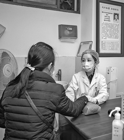 重慶市中醫(yī)院肛腸科醫(yī)生徐月(右)在肛腸科門診接診。新華社發(fā)
