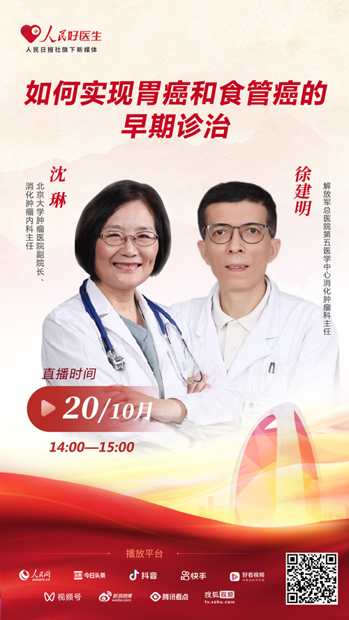 10月20日14:00,北京大學(xué)腫瘤醫(yī)院副院長、消化腫瘤內(nèi)科主任沈琳;解放軍總醫(yī)院第五醫(yī)學(xué)中心消化腫瘤科主任徐建明做客人民好醫(yī)生客戶端,給大家?guī)砦赴┖褪彻馨┰缙谠\治建議。