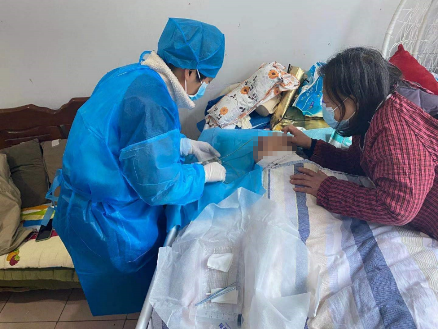 借助護理平臺,醫(yī)院以“互聯(lián)網(wǎng)+護理服務”的方式上門為臥床老人提供留置胃管護理。受訪者供圖