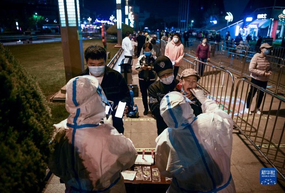 10月23日,在寧夏銀川市興慶區(qū)光明廣場(chǎng)采樣點(diǎn),醫(yī)務(wù)人員對(duì)居民進(jìn)行核酸采樣。新華社記者 馮開華攝