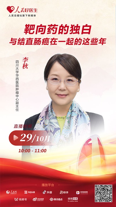 10月29日10:00-11:00,“人民好醫(yī)生”客戶端將邀請四川大學(xué)華西醫(yī)院腫瘤中心副主任李秋進行視頻直播,為您科普用于結(jié)直腸癌治療的靶向藥物的相關(guān)知識,千萬不要錯過。
