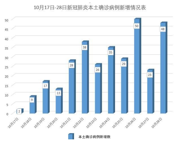 當(dāng)前,國(guó)外疫情持續(xù)蔓延,季節(jié)因素疊加,容易引發(fā)疫情傳播擴(kuò)散。10月17日以來(lái),國(guó)內(nèi)出現(xiàn)多點(diǎn)散發(fā)本土疫情,呈快速發(fā)展態(tài)勢(shì),根據(jù)國(guó)家衛(wèi)健委數(shù)據(jù)統(tǒng)計(jì),截至10月28日,兩周新增確診本土病例318例,波及北京、內(nèi)蒙古、河北、湖南、湖北、寧夏、陜西等多個(gè)省(區(qū)市)。