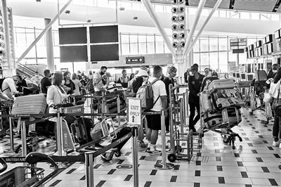 11月29日,旅客在南非開普敦國(guó)際機(jī)場(chǎng)辦理值機(jī)手續(xù)。為防范新冠變異病毒奧密克戎毒株傳播,多國(guó)近日對(duì)南非等非洲國(guó)家的航班和旅客實(shí)施入境限制,并升級(jí)防控措施