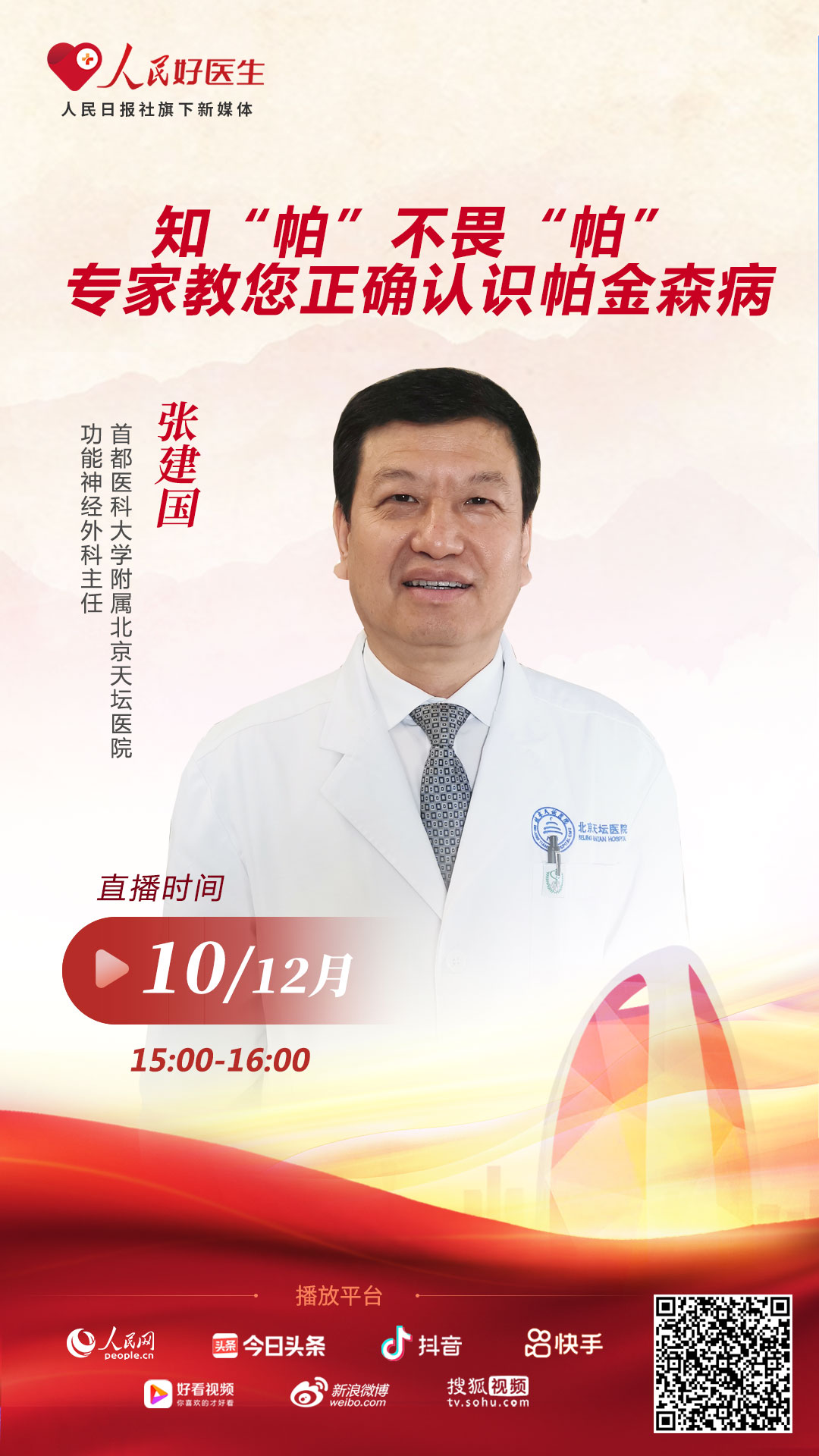 12月10日15:00,首都醫(yī)科大學(xué)附屬北京天壇醫(yī)院神經(jīng)外科中心副主任、功能神經(jīng)外科主任張建國教授將做客人民日?qǐng)?bào)社旗下新媒體平臺(tái)“人民好醫(yī)生”客戶端直播間,與大家分享帕金森病的相關(guān)知識(shí)。歡迎屆時(shí)收看。