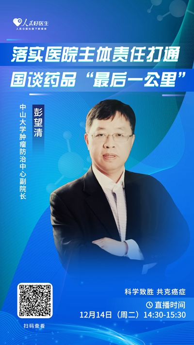 12月14日14:30,人民日報社旗下新媒體平臺“人民好醫(yī)生”將邀請中山大學腫瘤防治中心副院長彭望清做客直播間,詳談醫(yī)保政策落地實施情況,千萬不要錯過。