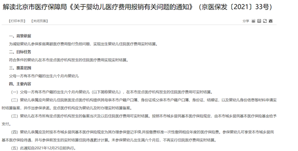 人民網(wǎng)北京12月24日電 (記者張文婷)為切實解決嬰幼兒高額醫(yī)療費用墊付負(fù)擔(dān)問題,提升參保家庭的幸福感、獲得感。近日,北京市醫(yī)療保障局發(fā)布《關(guān)于嬰幼兒醫(yī)療費用報銷有關(guān)問題的通知》(以下簡稱《通知》)指出,明日起,父母一方為北京市戶籍的出生六個月內(nèi)嬰幼兒(以下簡稱嬰幼兒)發(fā)生的住院醫(yī)療費用可實時結(jié)算。
