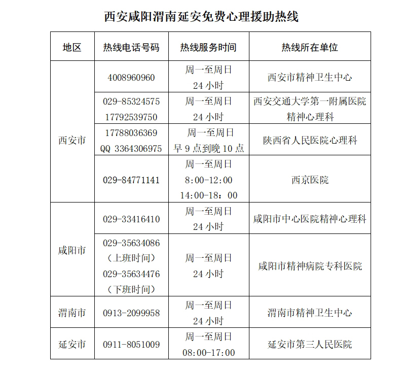省新冠肺炎疫情醫(yī)療救治心理干預專家組,組建心理援助熱線工作團隊,24小時為疫情心理求助者提供心理援助服務。同時,省衛(wèi)生健康委會同省政務服務中心在省12320衛(wèi)生熱線開通疫情心理援助熱線專席,依托陜西12345對全省有關(guān)疫情心理干預的訴求進行引導和分轉(zhuǎn)。