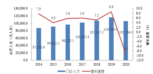 全國(guó)中醫(yī)類醫(yī)療機(jī)構(gòu)門診量及增長(zhǎng)速度。圖片來(lái)源:國(guó)家中醫(yī)藥管理局