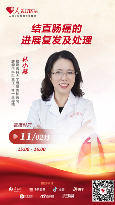 2月11日15:00,福建醫(yī)科大學(xué)附屬協(xié)和醫(yī)院腫瘤內(nèi)科科主任、博士生導(dǎo)師林小燕將做客人民日報(bào)社旗下新媒體平臺“人民好醫(yī)生”客戶端直播間,與大家分享“結(jié)直腸癌的進(jìn)展復(fù)發(fā)及處理”相關(guān)知識。歡迎屆時(shí)收看。