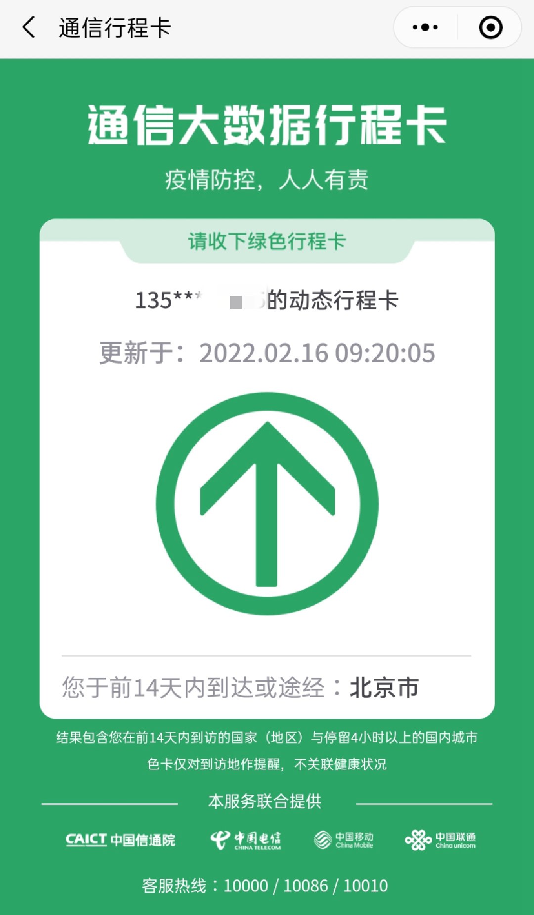 目前,通信行程卡顯示,北京市后的*(星號(hào))已消失。