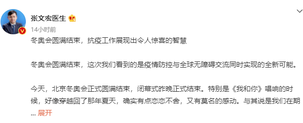 “北京冬奧會圓滿結(jié)束,這次我們看到的是疫情防控與全球無障礙交流同時實現(xiàn)的全新可能。從疫情防控的智慧而言,北京冬奧會的閉幕不是終點,而是起點。”張文宏說。
