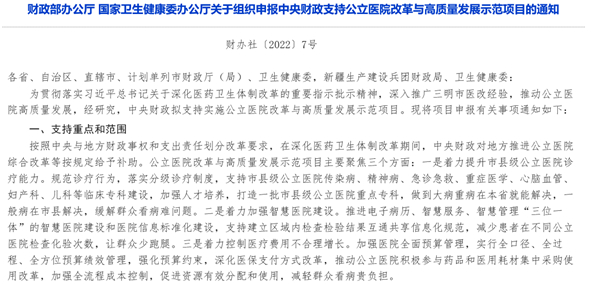 兩部門(mén):中央財(cái)政擬支持實(shí)施公立醫(yī)院改革與高質(zhì)量發(fā)展示范項(xiàng)目