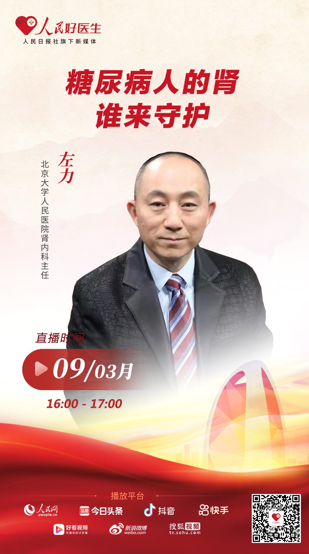 3月9日16:00,北京大學(xué)人民醫(yī)院腎內(nèi)科主任左力將做客人民日報社旗下新媒體“人民好醫(yī)生”客戶端,聚焦“糖尿病人的腎臟健康”話題,為公眾普及腎臟病相關(guān)知識,歡迎屆時收看。