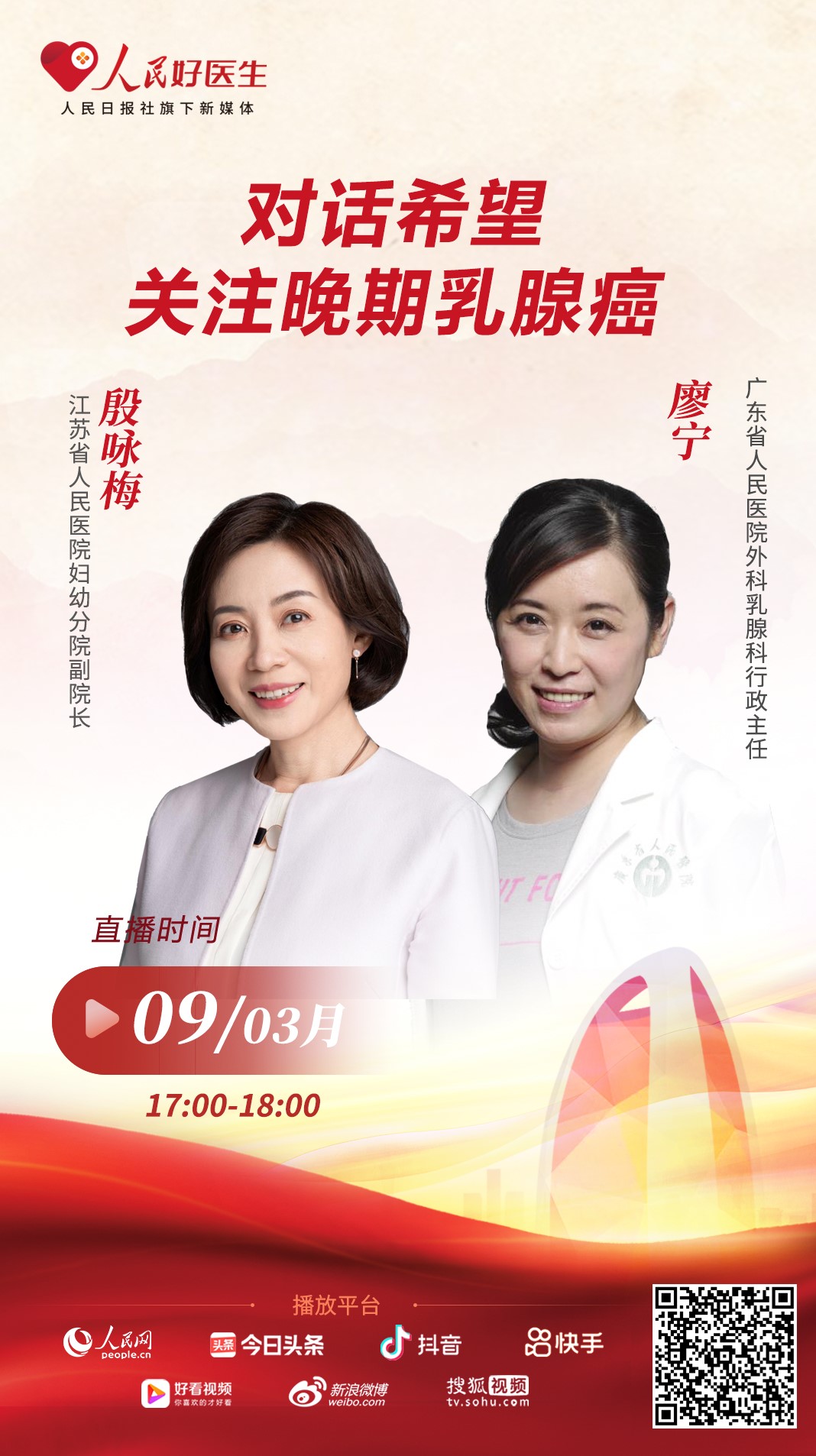 3月9日17:00,江蘇省人民醫(yī)院婦幼分院副院長殷詠梅,廣東省人民醫(yī)院外科乳腺科行政主任廖寧將做客人民日報社旗下新媒體“人民好醫(yī)生”客戶端,聚焦“關注晚期乳腺癌”話題,為公眾普及乳腺癌相關知識,歡迎屆時收看。
