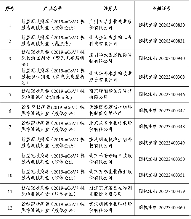 國(guó)家藥監(jiān)局已批準(zhǔn)12個(gè)新冠病毒抗原檢測(cè)試劑