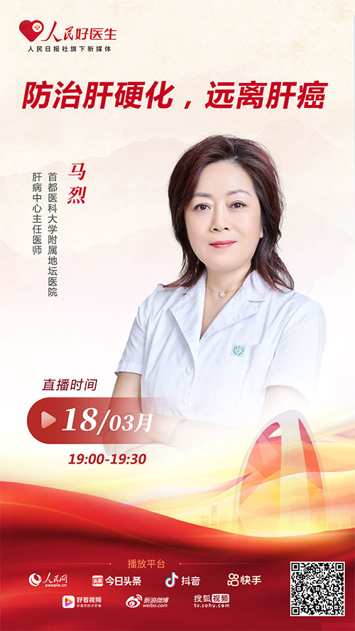 3月18日19:00,首都醫(yī)科大學(xué)附屬地壇醫(yī)院肝病中心主任醫(yī)師馬烈將做客“人民好醫(yī)生”健康科普直播間,與大家就肝硬化防治的相關(guān)問(wèn)題進(jìn)行分享。
