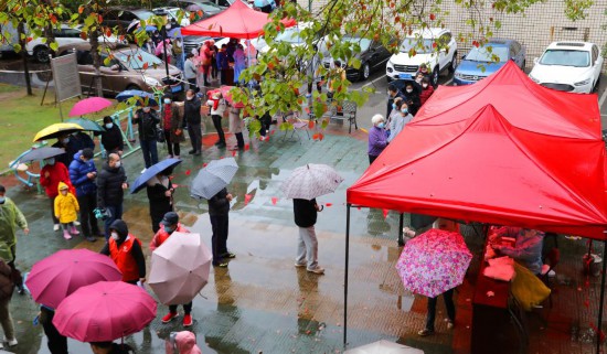 3月21日,在位于上海閔行的一個居民小區(qū)內(nèi),居民排隊進行核酸檢測采樣。新華社記者 方喆 攝