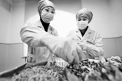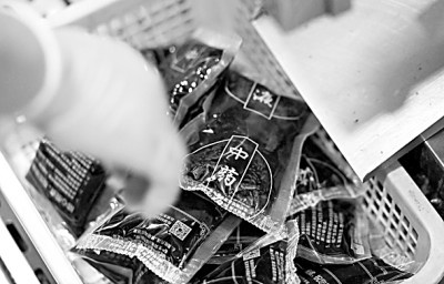 工作人員整理包裝好的中藥煎劑 新華社發(fā)
