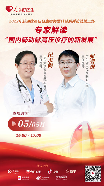 5月5日16:00,廣東省人民醫(yī)院心內(nèi)科主任醫(yī)師張曹進(jìn)、山東大學(xué)齊魯醫(yī)院心內(nèi)科主任醫(yī)師紀(jì)求尚將做客“人民好醫(yī)生”客戶端,為大家揭開(kāi)肺動(dòng)脈高壓的神秘面紗,解讀國(guó)內(nèi)肺動(dòng)脈高壓診療的新發(fā)展。