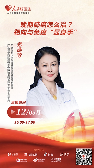 5月12日16:00 ,“人民好醫(yī)生”客戶端將邀請廣州醫(yī)科大學(xué)附屬腫瘤醫(yī)院腫瘤內(nèi)科主任、廣東省中西醫(yī)結(jié)合學(xué)會腫瘤生物治療專委會主任委員鄭燕芳做客直播間,就“晚期肺癌治療”話題與公眾進行分享,歡迎屆時收看。