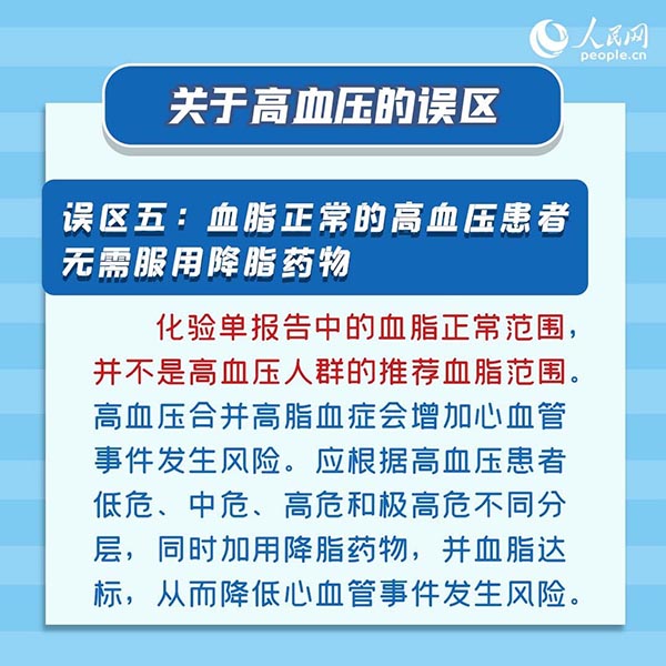 誤區(qū)五:血脂正常的高血壓患者,不用服用降脂藥物