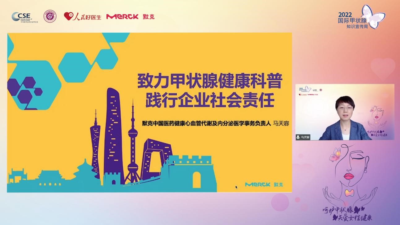 提高甲狀腺疾病防治水平,需要社會多方的聯(lián)合參與,為患者帶來健康福祉!澳10多年來積極與政府、醫(yī)院、學(xué)會等協(xié)同推進(jìn)多項(xiàng)甲狀腺疾病科普項(xiàng)目,倡導(dǎo)健康生活方式,助力中國甲狀腺疾病科學(xué)防治工作的開展!瘪R天容介紹說,秉持“齊心為病患”的理念,默克連續(xù)14年支持甲狀腺科普活動,連續(xù)四年支持甲狀腺科普學(xué)組舉辦的甲狀腺科普大賽項(xiàng)目,旨在鼓勵以簡單易懂的形式科普甲狀腺疾病。