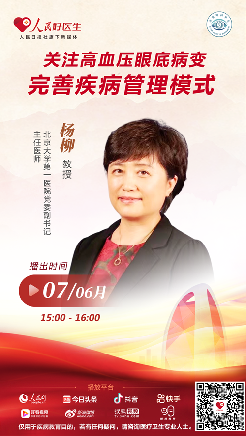 6月7日15:00,“人民好醫(yī)生”客戶端將邀請(qǐng)北京大學(xué)第一醫(yī)院黨委副書記、主任醫(yī)師、教授楊柳做客直播間,為廣大網(wǎng)友科普高血壓眼底病變相關(guān)科普知識(shí)。