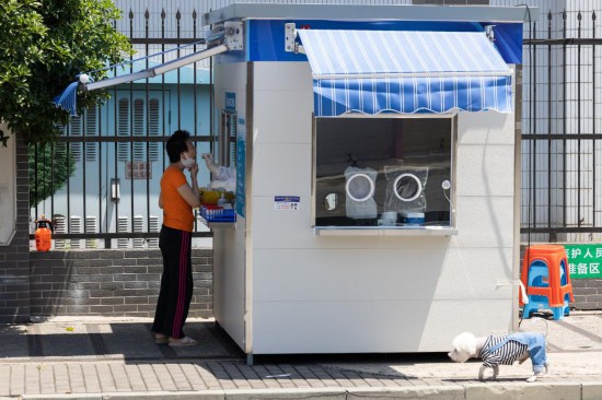 5月31日,在上海市黃浦區(qū)福佑路上,市民在核酸采樣工作站做采樣檢測(cè)。新華社記者 金立旺 攝