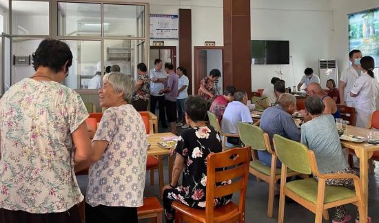 浙江省紹興市一家民營養(yǎng)老服務機構(gòu)內(nèi),老人們在用餐。受訪者供圖