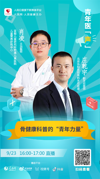 隨著社會生活的不斷發(fā)展進步,大眾對于健康領(lǐng)域的科普需求日益增長,如何讓科普內(nèi)容深入人心,科普形式如何求新求變是每一位健康工作者都在思考的問題。9月23日16:00,北京協(xié)和醫(yī)院骨科主任助理、副主任醫(yī)師莊乾宇,首都兒童研究所附屬兒童醫(yī)院兒童營養(yǎng)研究中心主治醫(yī)師肖凌將做客“青年醫(yī)聲”直播間,和網(wǎng)友們分享關(guān)于健康知識的科普創(chuàng)作心得和感悟。