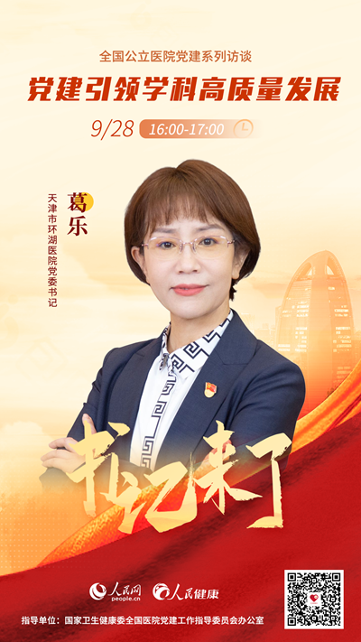 建設患者放心、人民滿意的醫(yī)院是公立醫(yī)院的使命。每家醫(yī)院在做黨建工作時都有自己的特色,那么,天津市環(huán)湖醫(yī)院黨建工作有什么與眾不同之處?9月28日16:00-17:00,天津市環(huán)湖醫(yī)院黨委書記葛樂將做客《書記來了》,與大家分享醫(yī)院在加強黨建、改善人民群眾就醫(yī)體驗等方面的經(jīng)驗和做法,敬請關注。