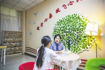 梅玫(右)與未成年人談心新華社記者 黃偉攝