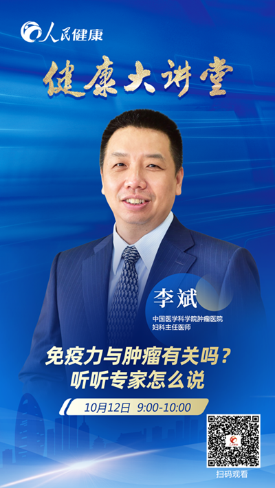 10月12日9:00-10:00,人民健康《健康大講堂》欄目邀請(qǐng)到中國醫(yī)學(xué)科學(xué)院腫瘤醫(yī)院婦科主任醫(yī)師李斌進(jìn)行視頻直播,歡迎屆時(shí)收看。