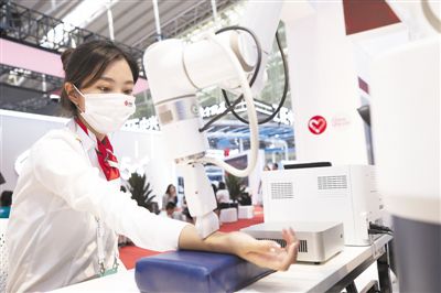 8月10日,在2022世界5G大會(huì)展廳里,參觀者在體驗(yàn)5G網(wǎng)絡(luò)支持下的5G遠(yuǎn)程醫(yī)療設(shè)備。新華社記者 張濤攝