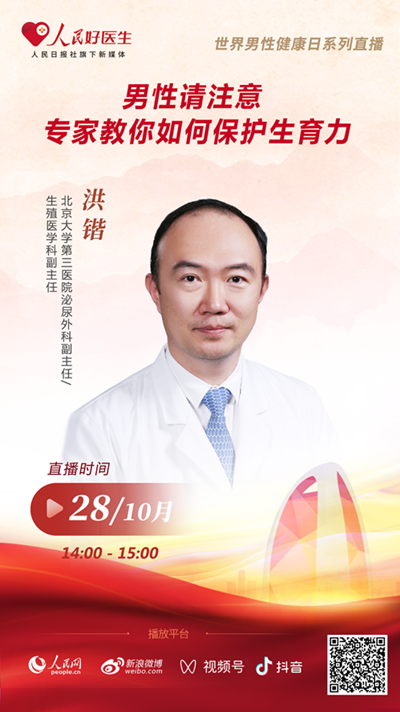 10月28日14:00,北京大學(xué)第三醫(yī)院泌尿外科副主任/生殖醫(yī)學(xué)科副主任洪鍇將做客“人民好醫(yī)生”客戶端直播間,向廣大網(wǎng)友分享男性健康的相關(guān)知識,教大家破譯精液里暗藏的健康密碼,歡迎屆時收看。