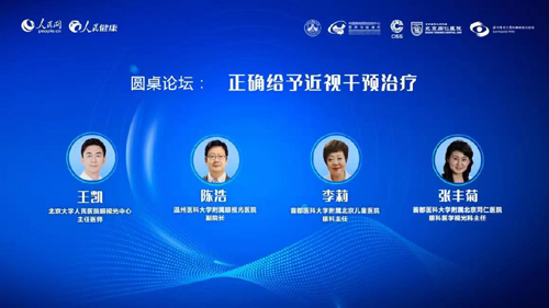 北京大學人民醫(yī)院眼視光中心主任醫(yī)師王凱作為“正確給予近視干預治療”圓桌座談環(huán)節(jié)的嘉賓主持人,與溫州醫(yī)科大學附屬眼視光醫(yī)院副院長陳浩、首都醫(yī)科大學附屬北京兒童醫(yī)院眼科主任李莉、首都醫(yī)科大學附屬北京同仁醫(yī)院眼科醫(yī)學視光科主任張豐菊,共同探討了近視干預的話題。
