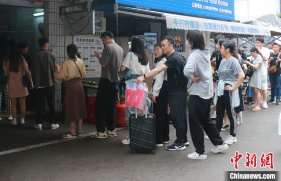 圖為游客在柳州螺螄粉店前排起長龍。 中新社記者 林馨 攝