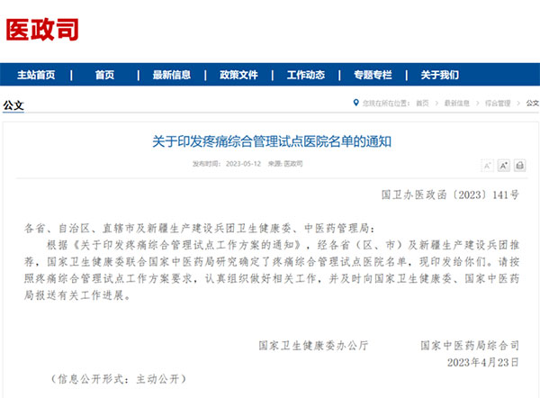 國家衛(wèi)健委官網(wǎng)關(guān)于印發(fā)疼痛綜合管理試點(diǎn)醫(yī)院名單的通知